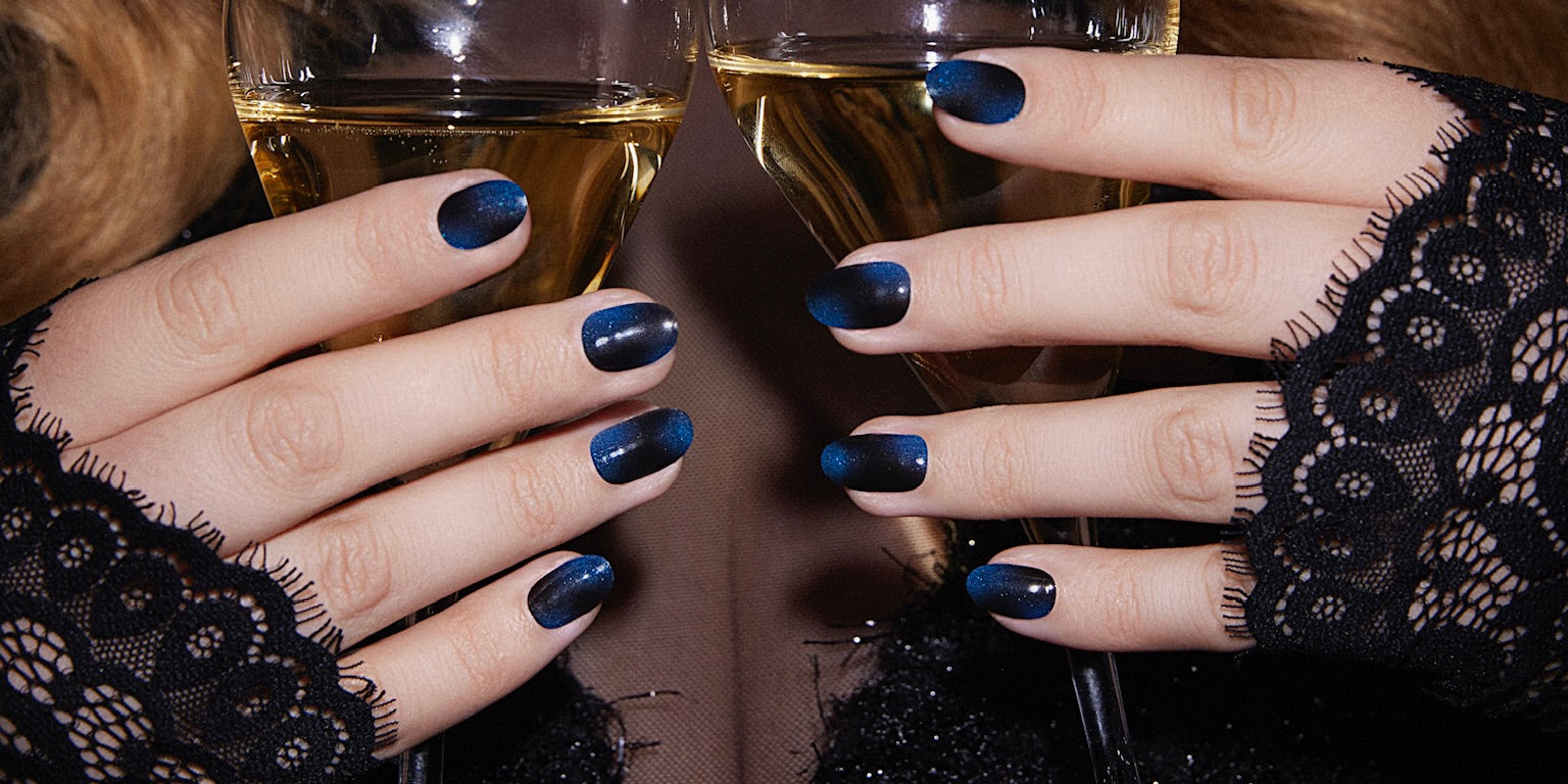 Universe by Joann van den Herik Universe Nails van Joann met gouden feesttasje Universe Joann van den herik Maniac Nails Blue Glitter Nail Art Gellak Sticker Manicure